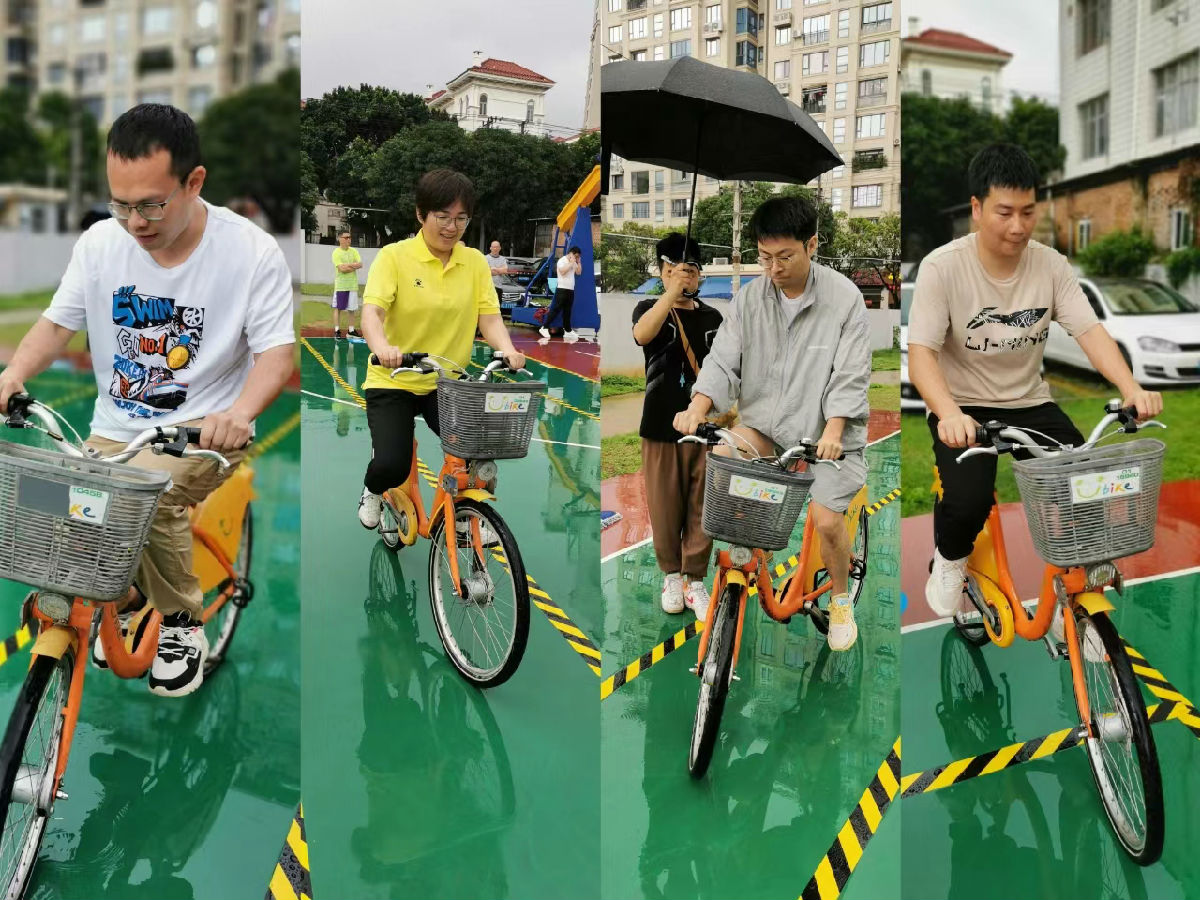 慢工細活,游刃有余。參賽騎手在規定的區域內慢騎比慢,身體不觸及地面,手不用剎車,輪不壓線。雙腳不落地,慢工出細活,一個個保持人與車的平衡,盡最大努力減慢騎行,這一項目鍛煉了職工們的身體協調能力。