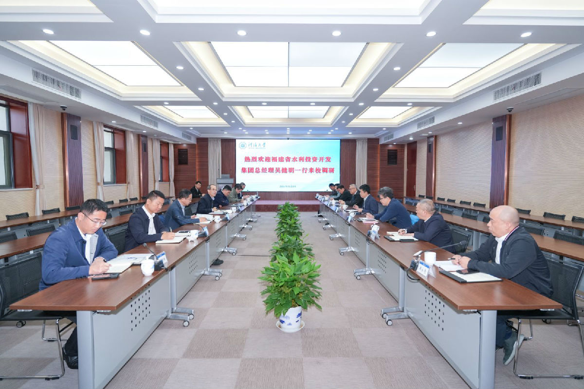 在河海大學考察期間,吳健明總經理與河海大學鄭金海校長座談交流。鄭金海校長介紹河海大學建校史、特色學科以及科研平臺建設等情況,吳健明總經理介紹集團公司改革發展情況以及未來發展重點,指出集團公司肩負著推動福建水利水務產業高質量發展的使命,對科技創新、高端人才有著迫切的需求,希望借助河海大學涉水行業綜合優勢,加強科研、人才等領域合作。雙方就依托項目帶科研,與河海大學共同搭建“產學研”合作平臺,加強涉水“四新”研究、數字孿生水利、人才培養等領域達成初步合作意向。