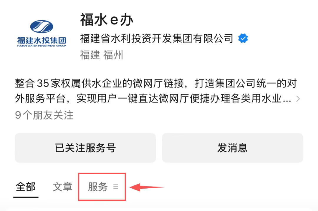 為進一步暢通線上線下訴求渠道,福建水投集團繼啟用統一供水服務熱線“96396”后,進一步整合旗下35家供水企業線上服務資源,依托微信服務號,打造統一供水服務平臺“福水e辦”,為全省近276萬用戶提供“一個入口、全線貫通”“掌上秒辦、全程零跑”的用水體驗