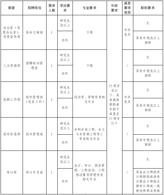 福建省水利投資開發集團有限公司2023年對外公開招聘崗位及條件見下表: